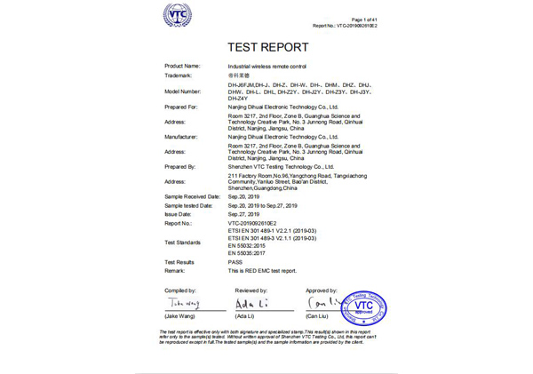南京帝淮电子科技有限公司,国内工业遥控器行业领军企业,自主研发、定制、非标设计各类工业级无线??仄?、工业级有线控制器、智能化自主算法逻辑的本地控制器等系列产品。已经申请及正在申请的技术专利、外观专利有近三十项左右,并通过了CE欧盟认证、国家级试验检验报告、EMC电磁兼容认证等。